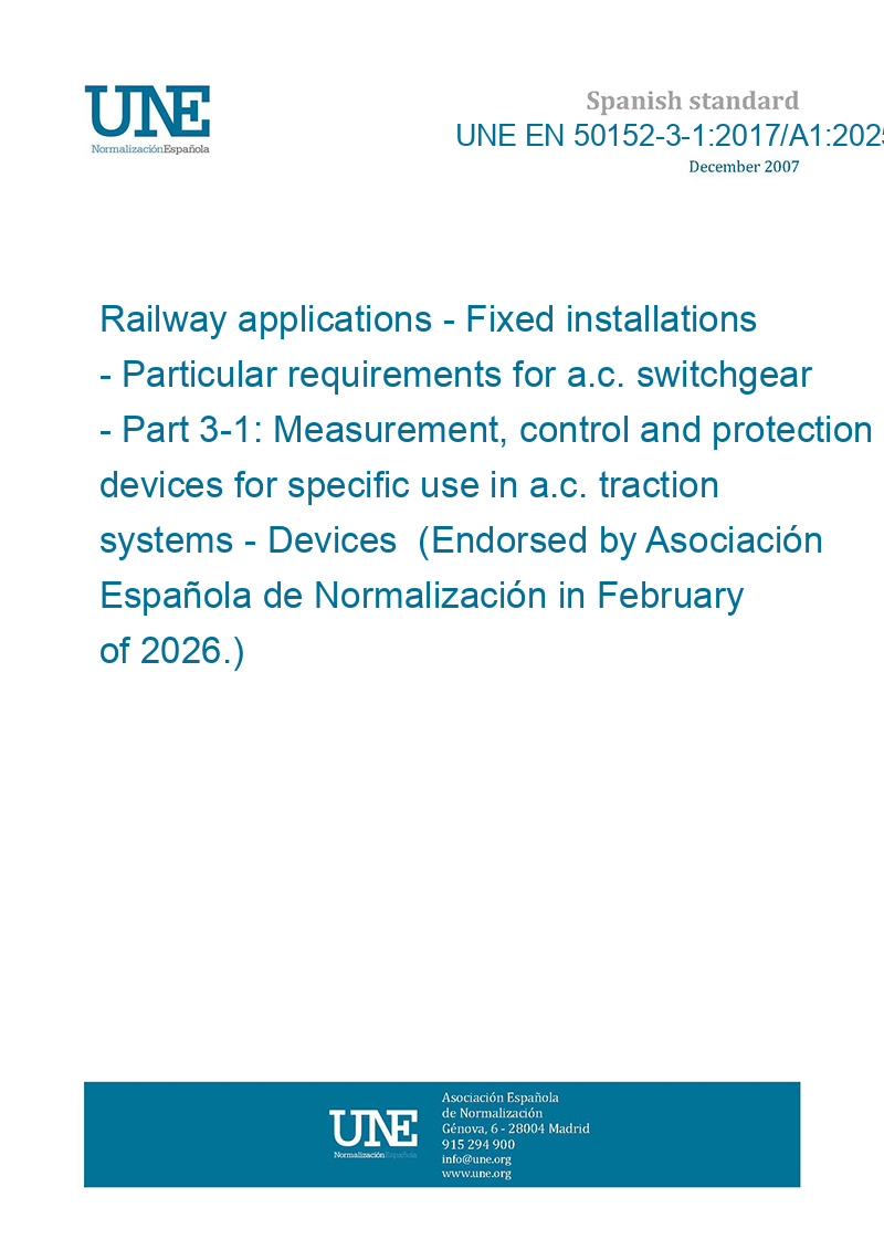 | Standard number: | UNE EN 50152-3-1:2017/A1:2025 |