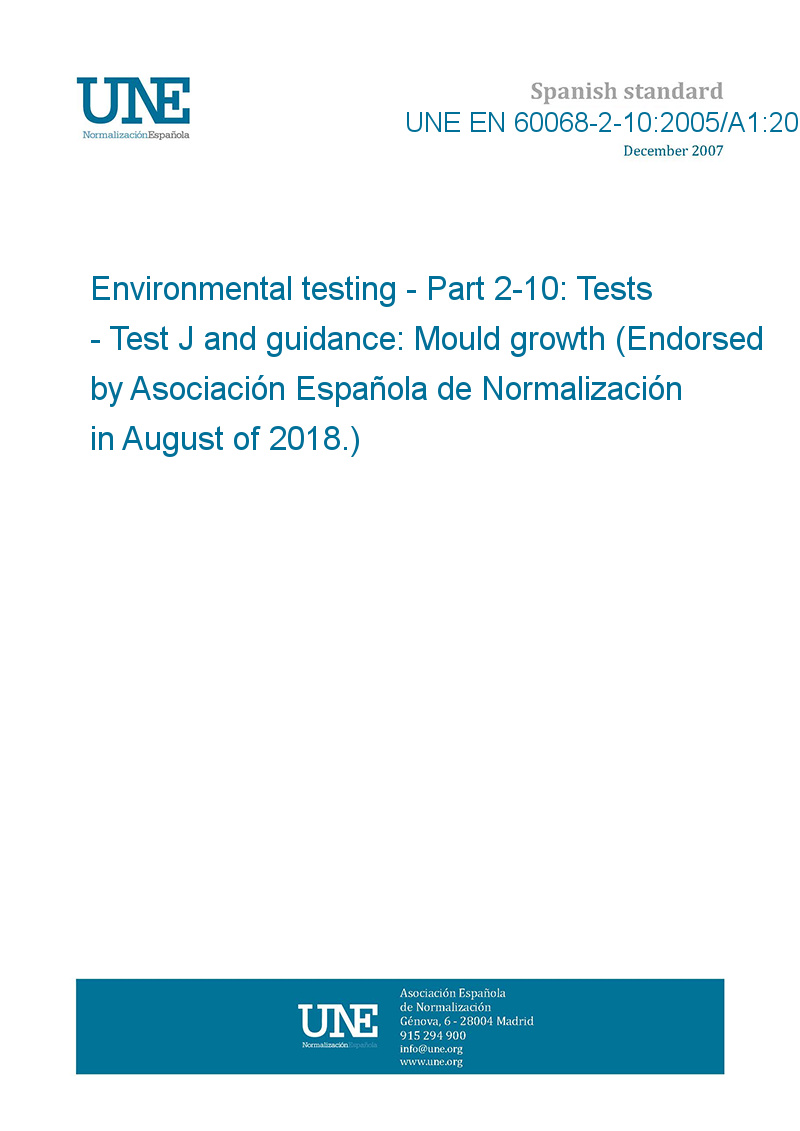 Ensayos ambientales. Parte 2-10: Ensayos. Ensayo J y Guía: Crecimiento de hongos (Ratificada por la Asociación Española de Normalización en agosto de 2018.)