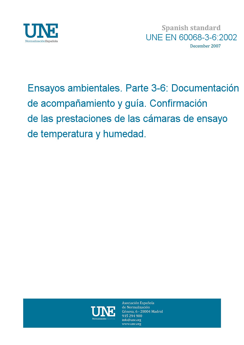 >UNE standards>UNE EN 60068-3-6:2002 Environmental testing -- Part 3-6: Supporting documentation and guidance - Confirmation of the performance of temperature/humidity chambers.