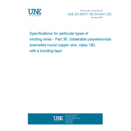This standard UNE EN 60317-36:2014/A1:2020 Specifications for particular types of winding wires - Part 36: Solderable polyesterimide enamelled round copper wire, class 180, with a bonding layer is classified in these ICS categories: