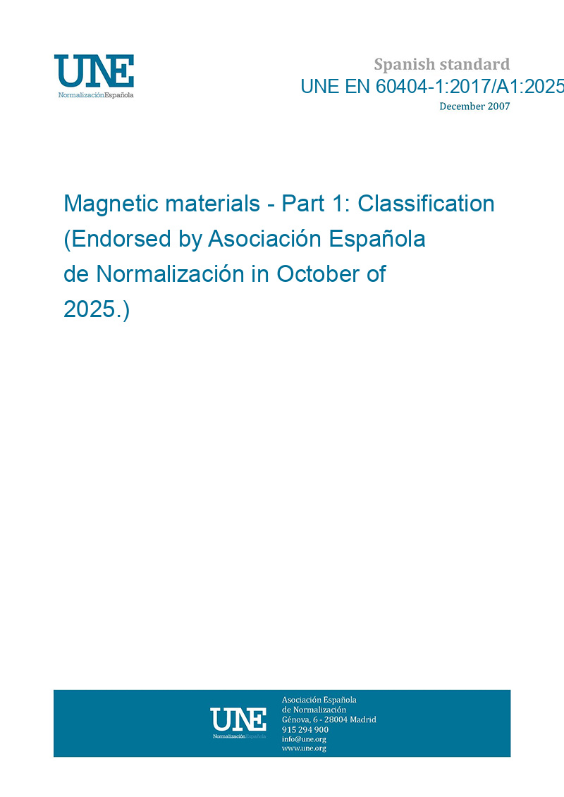 Materiales magnéticos. Parte 1: Clasificación. (Ratificada por la Asociación Española de Normalización en octubre de 2025.)