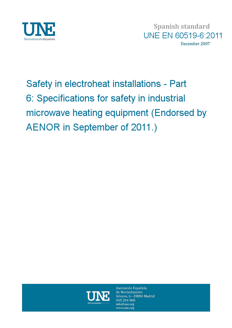 Seguridad en las instalaciones electrotérmicas. Parte 6: Requisitos de seguridad en equipos industriales de calentamiento por microondas (Ratificada por AENOR en septiembre de 2011.)