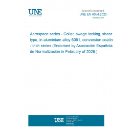 This standard UNE EN 6054:2025 Aerospace series - Collar, swage locking, shear type, in aluminium alloy 6061, conversion coating - Inch series (Endorsed by Asociación Española de Normalización in February of 2026.) is classified in these ICS categories:
