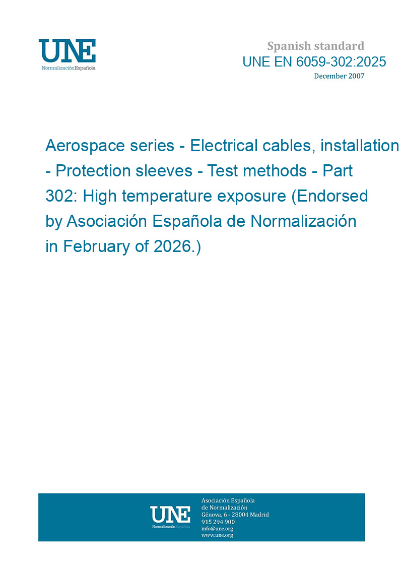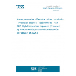 Material aeroespacial. Cables eléctricos, instalación. Fundas protectoras. Métodos de ensayo. Parte 302: Exposición a alta temperatura. (Ratificada por la Asociación Española de Normalización en febrero de 2026.)