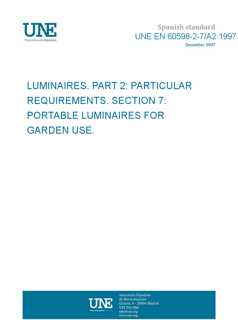 >UNE standards>UNE EN 60598-2-7/A2:1997 LUMINAIRES. PART 2: PARTICULAR REQUIREMENTS. SECTION 7: PORTABLE LUMINAIRES FOR GARDEN USE.