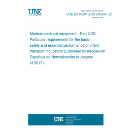 Medical electrical equipment - Part 2-20: Particular requirements for the basic safety and essential performance of infant transport incubators (Endorsed by Asociación Española de Normalización in January of 2017.)