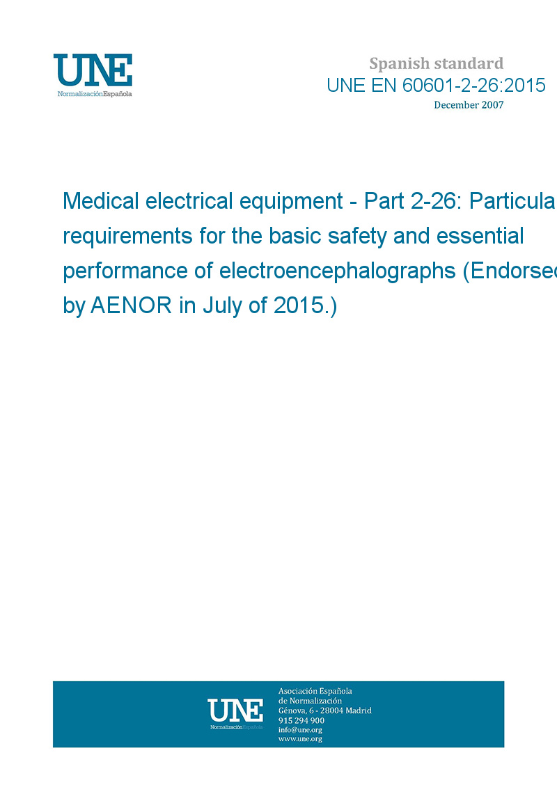 Equipos electromédicos. Parte 2-26: Requisitos generales para la seguridad básica y el funcionamiento esencial de los electroencefalogramas. (Ratificada por AENOR en julio de 2015.)