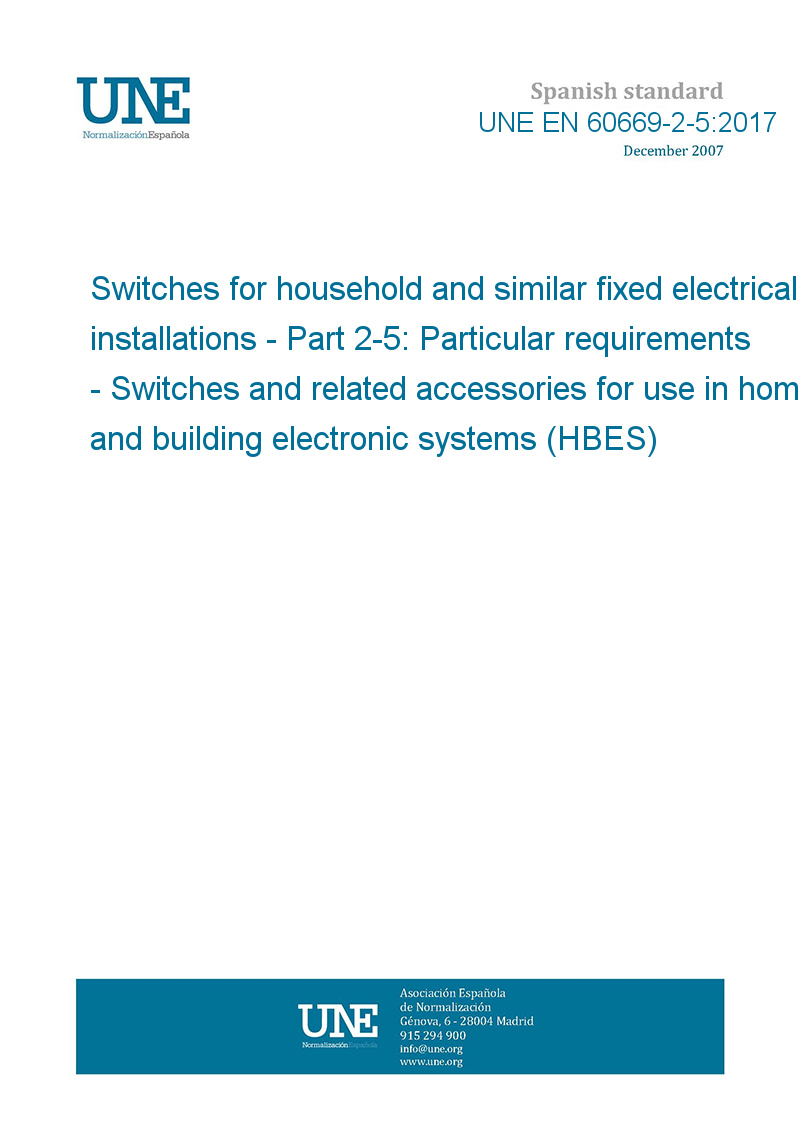 Interruptores para instalaciones eléctricas fijas, domésticas y análogas. Parte 2-5: Requisitos particulares. Interruptores y sus accesorios relacionados para uso en sistemas electrónicos para viviendas y edificios (HBES).