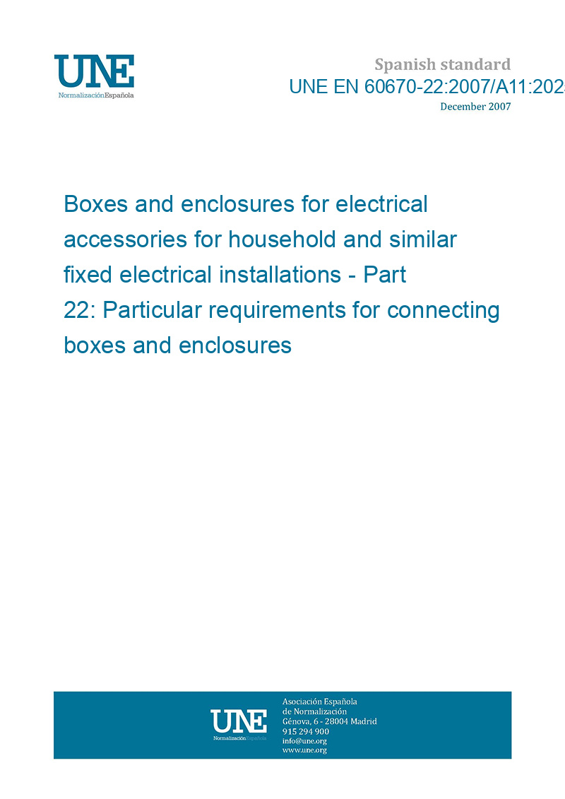 Standard number: | UNE EN 60670-22:2007/A11:2025 |