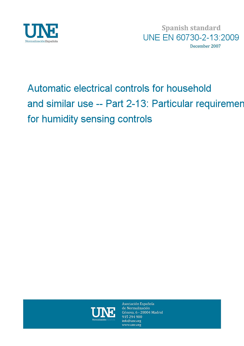 | Standard number: | UNE EN 60730-2-13:2009 |