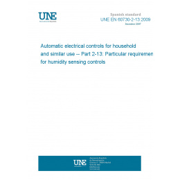This standard UNE EN 60730-2-13:2009 Automatic electrical controls for household and similar use -- Part 2-13: Particular requirements for humidity sensing controls is classified in these ICS categories:
