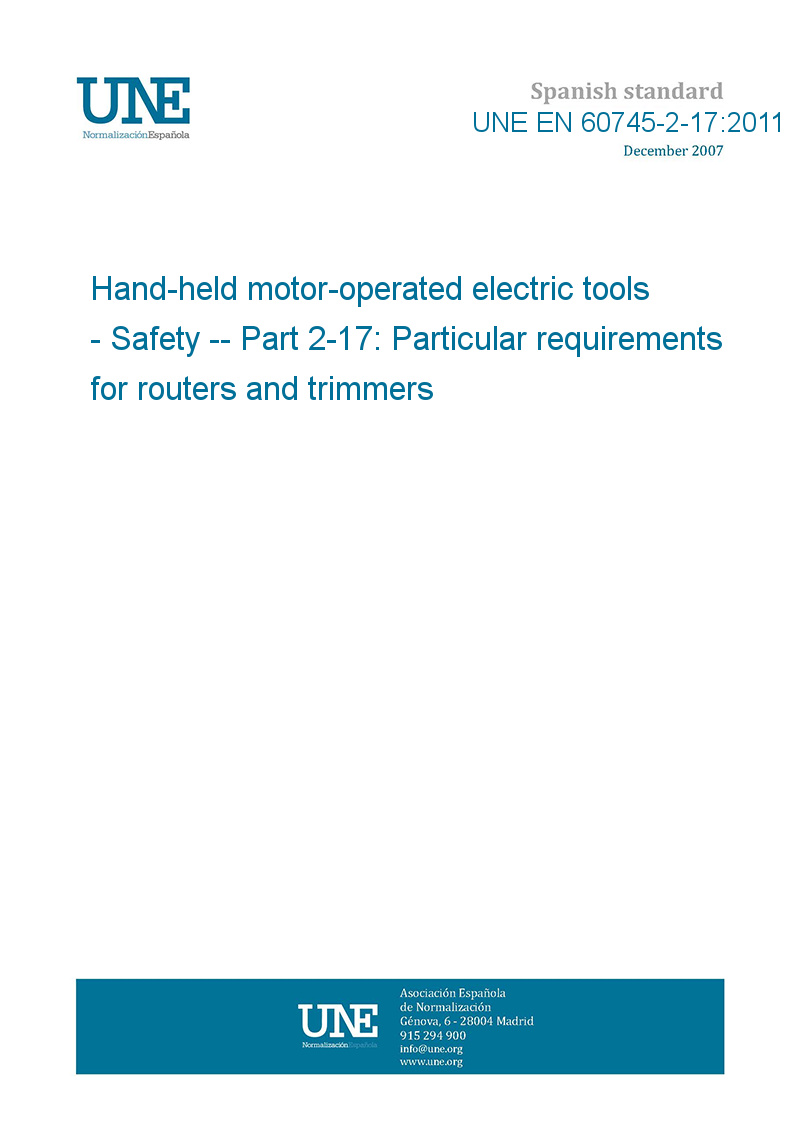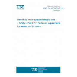 >UNE standards>UNE EN 60745-2-17:2011 Hand-held motor-operated electric tools - Safety -- Part 2-17: Particular requirements for routers and trimmers