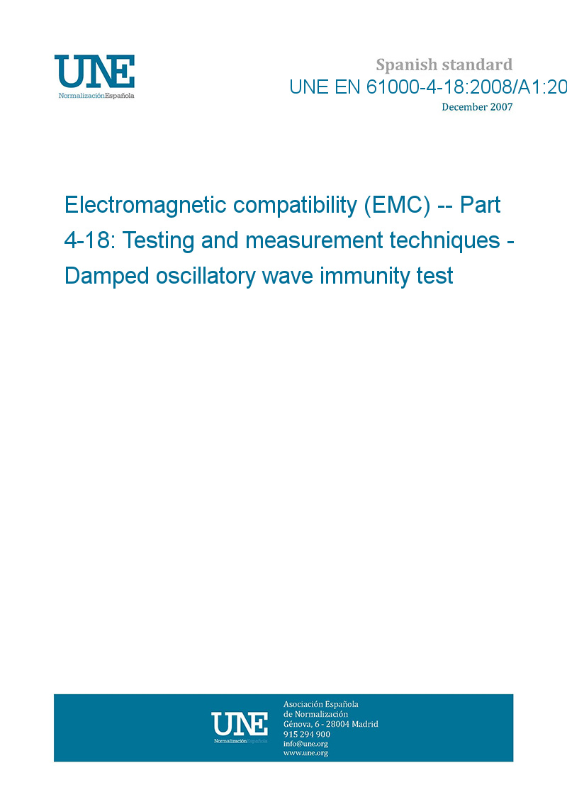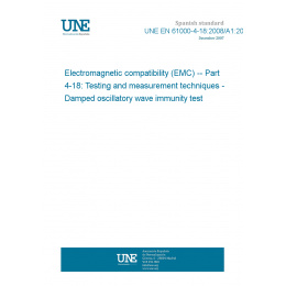 >UNE standards>UNE EN 61000-4-18:2008/A1:2011 Electromagnetic compatibility (EMC) -- Part 4-18: Testing and measurement techniques - Damped oscillatory wave immunity test