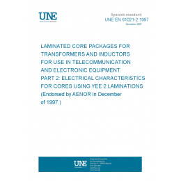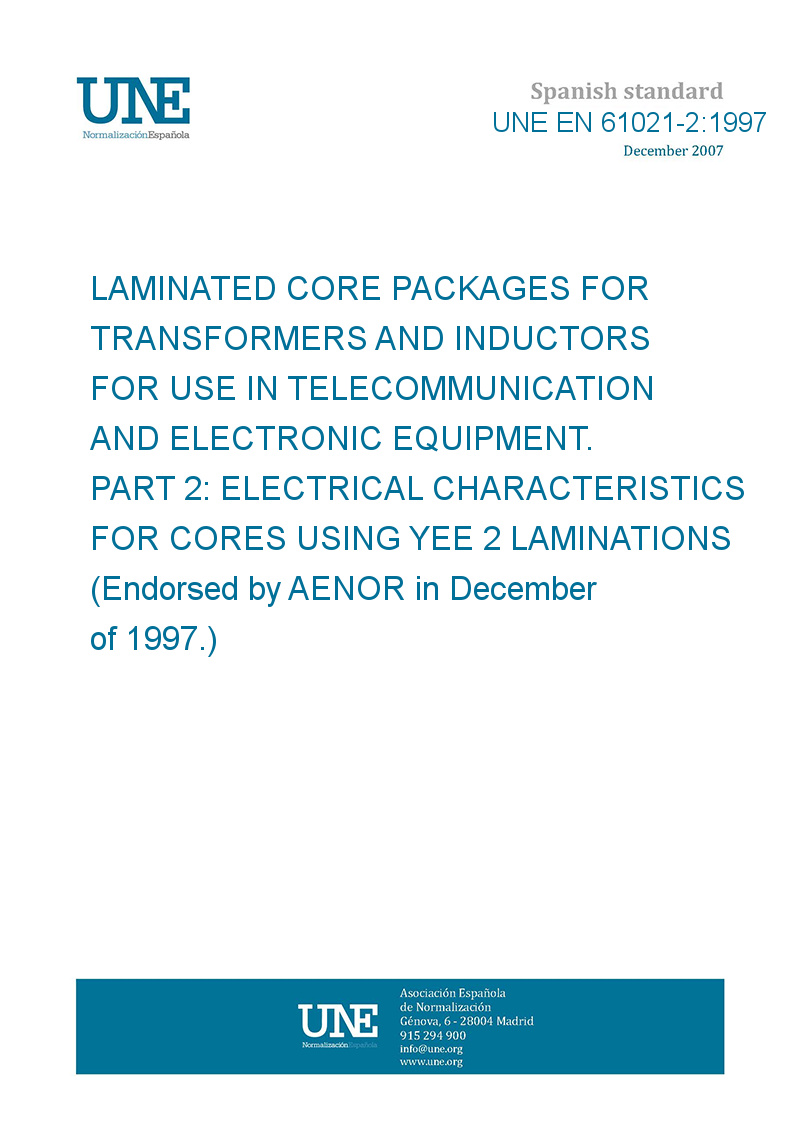 Núcleos de chapa laminada para transformadores e inductancias destinados a ser utilizados en equipos electrónicos y de telecomunicaciones. Parte 2: Características eléctricas para núcleos que emplean chapa laminada YEE 2. (Ratificada por AENOR en diciembre de 1997.)