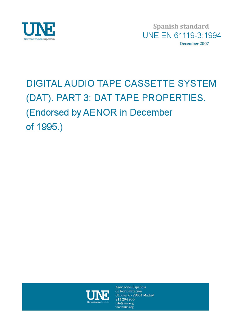 DIGITAL AUDIO TAPE CASSETTE SYSTEM (DAT). PART 3: DAT TAPE PROPERTIES. (Endorsed by AENOR in December of 1995.)