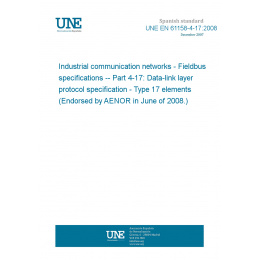 Redes de comunicaciones industriales. Especificación de Fieldbus. Parte 4-17: Especificación del protocolo de la capa de enlace de datos. Elementos de tipo 17. (Ratificada por AENOR en junio de 2008.)