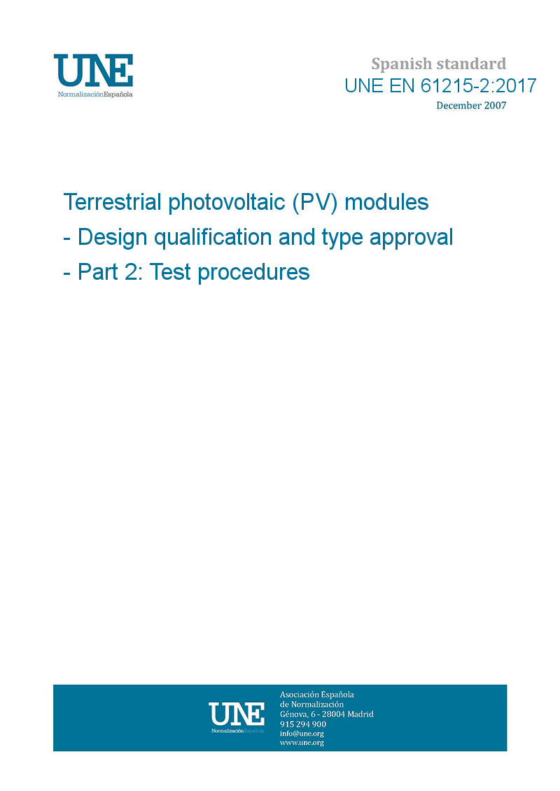 >UNE standards>UNE EN 61215-2:2017 Terrestrial photovoltaic (PV) modules - Design qualification and type approval - Part 2: Test procedures