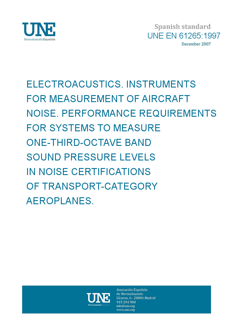 Electroacústica. Instrumentos para la medición del ruido de aeronaves. Requisitos de los sistemas de medida de los niveles de presión acústica en bandas de tercio de octava, para la certificación acústica de aviones de transporte.