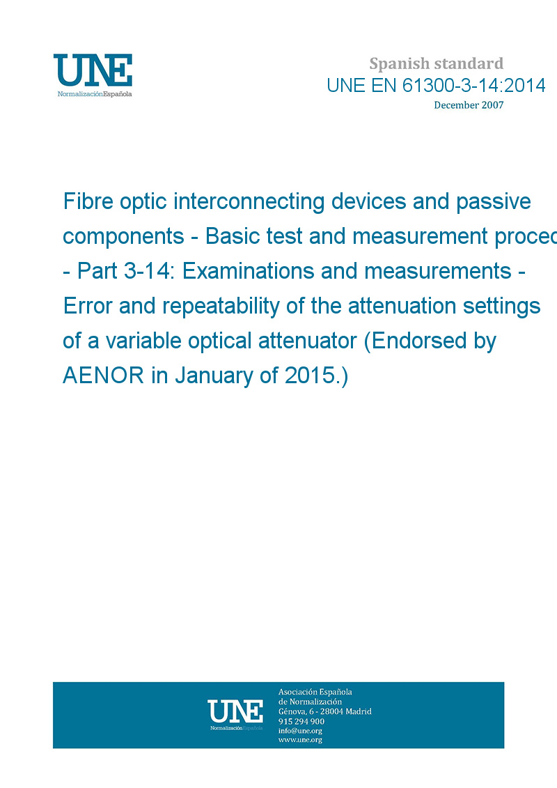 | Standard number: | UNE EN 61300-3-14:2014 |