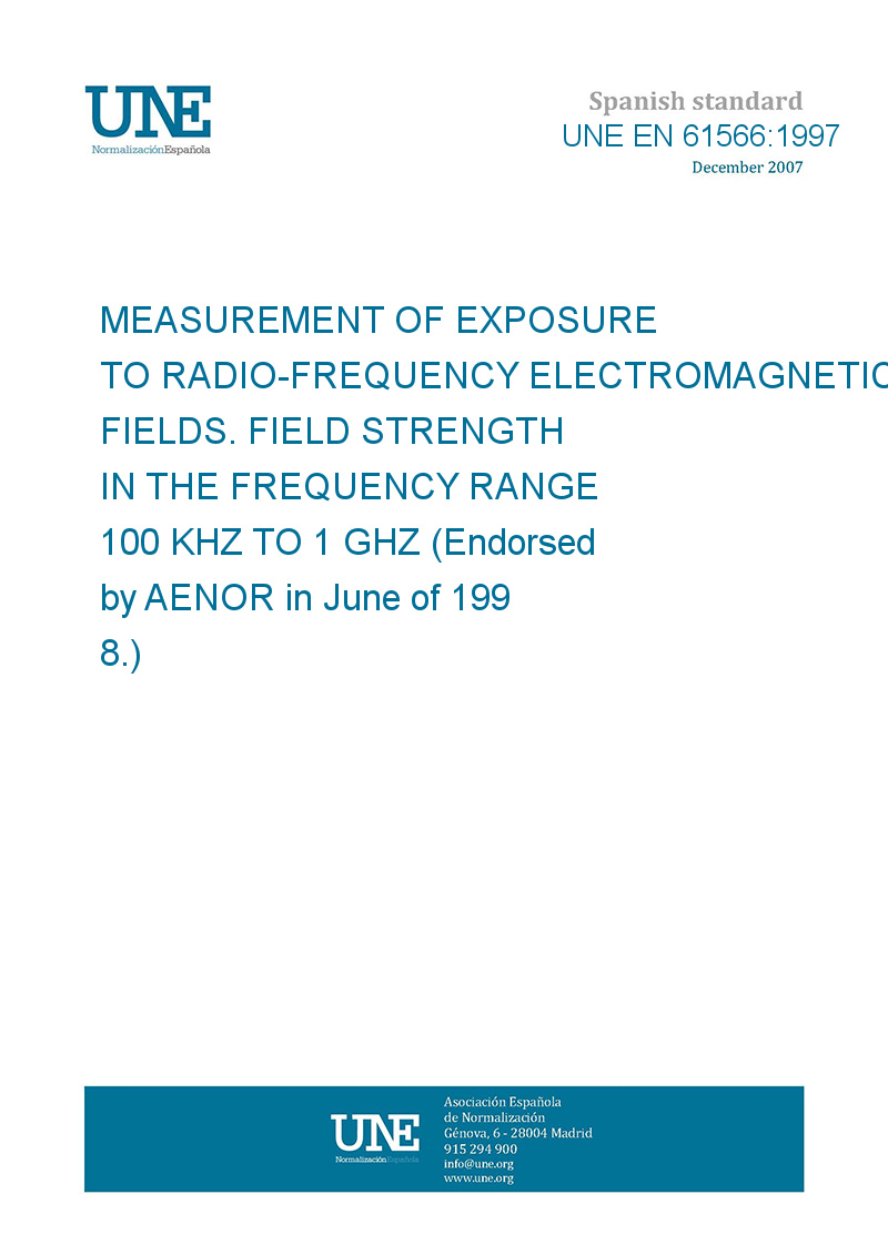 Medida de la exposición a campos electromagnéticos con frecuencias de radio. Intensidad de campo en el rango de frecuencias entre 100 kHz y 1 GHz. (Ratificada por AENOR en junio de 1998.)
