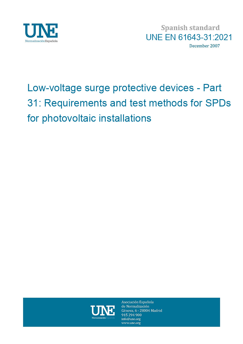 Dispositivos de protección contra sobretensiones transitorias de baja tensión. Parte 31: Requisitos y métodos de ensayo de los SPD para instalaciones fotovoltaicas