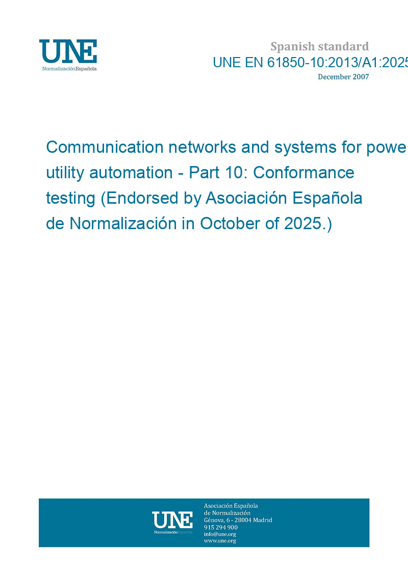 Standard number: | UNE EN 61850-10:2013/A1:2025 |