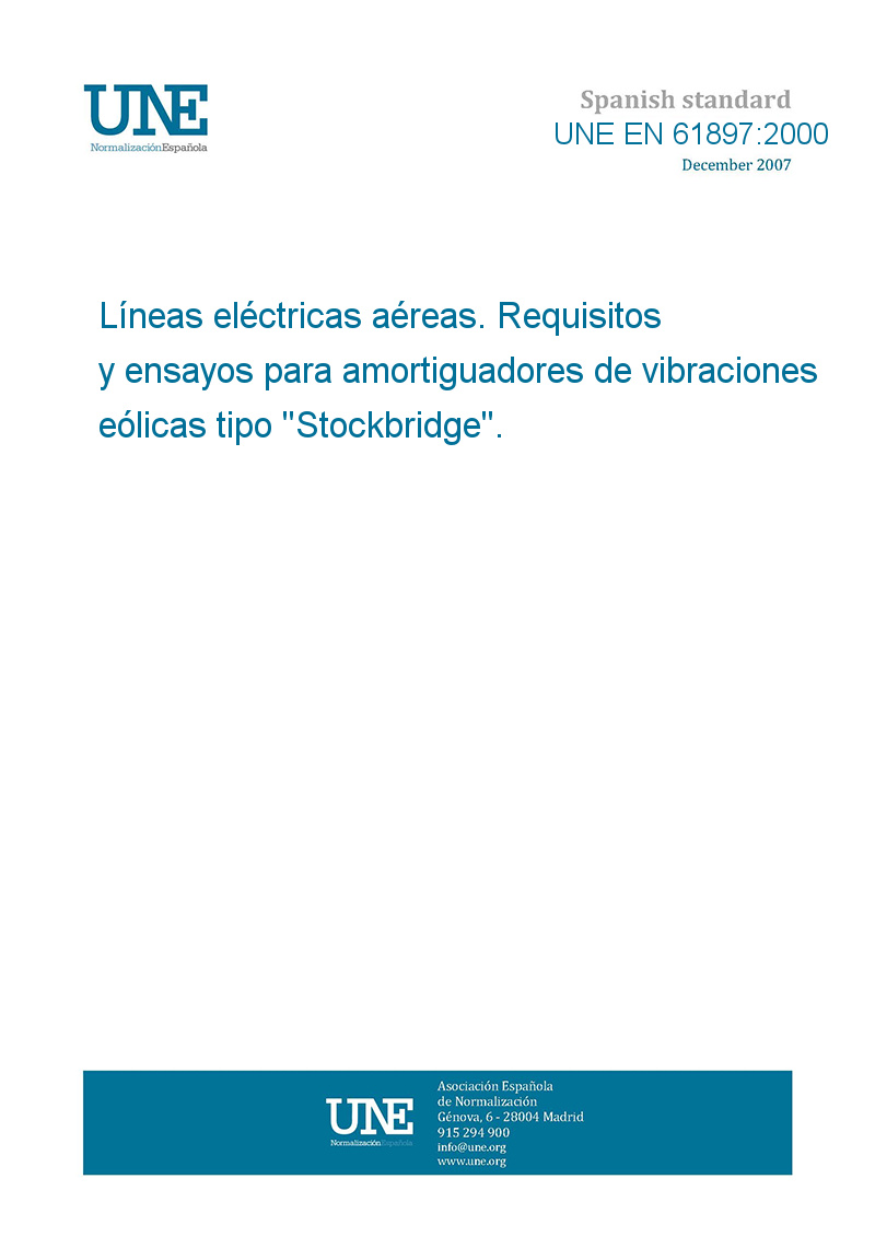 >UNE standards>UNE EN 61897:2000 Overhead lines. Requirements and tests for Stockbridge type aeolian vibration dampers