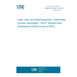 Audio, video, and related equipment - Determination of power consumption - Part 3: Television sets (Endorsed by AENOR in April of 2016.)