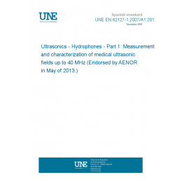 Ultrasonidos. Hidrófonos. Parte 1: Medida y caracterización de los campos ultrasónicos médicos hasta 40 MHz utilizando hidrófonos. (Ratificada por AENOR en mayo de 2013.)