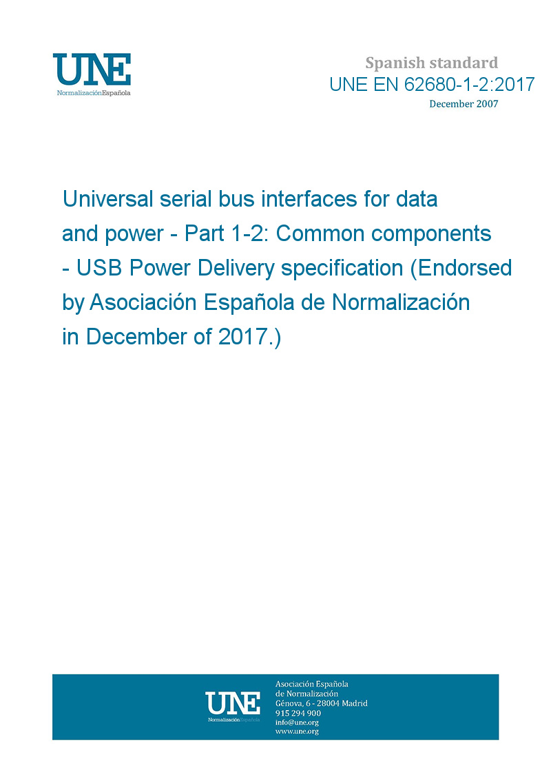 Universal serial bus interfaces for data and power - Part 1-2: Common components - USB Power Delivery specification (Endorsed by Asociación Española de Normalización in December of 2017.)