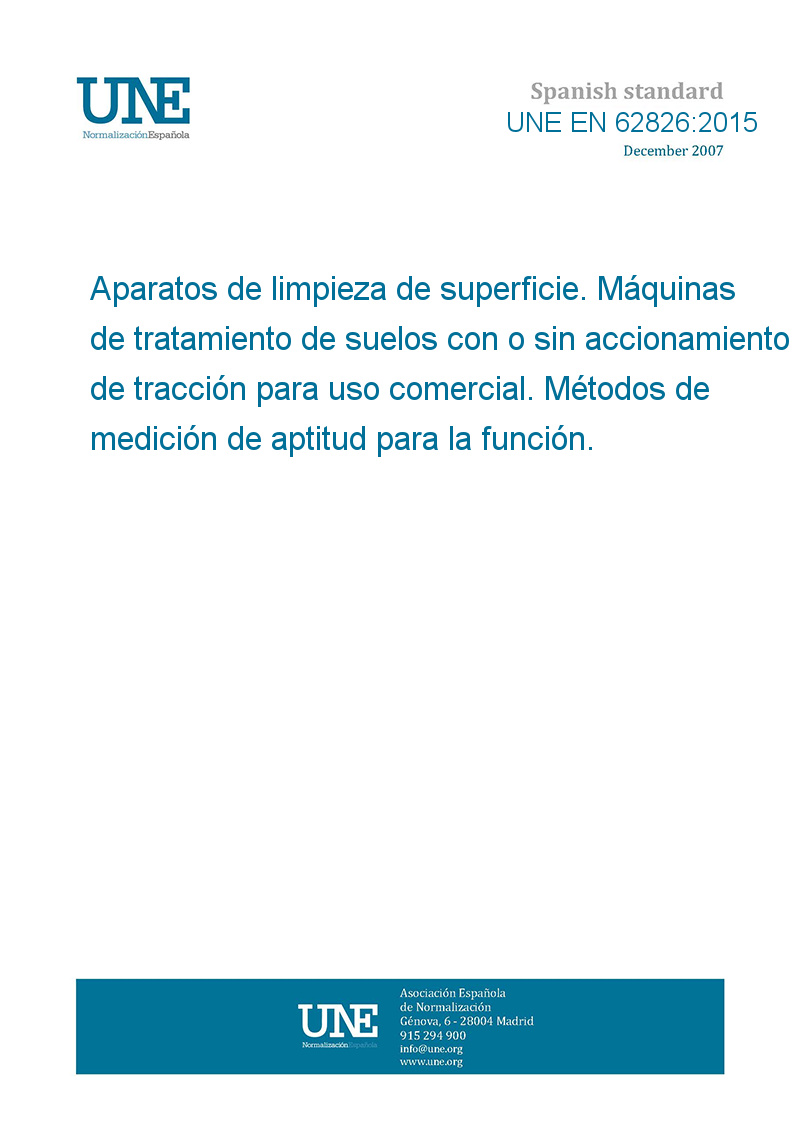 >UNE standards>UNE EN 62826:2015 Surface cleaning appliances - Floor treatment machines with or without traction drive, for commercial use - Methods of measuring the performance