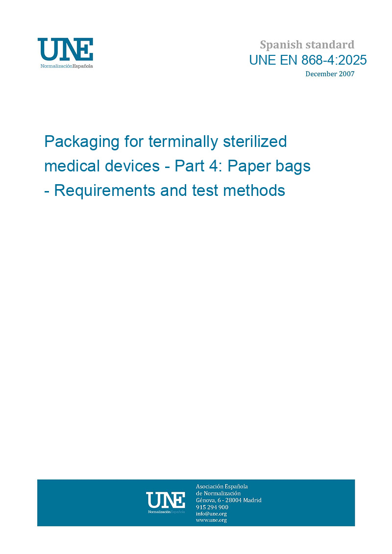 Materiales de envasado para productos sanitarios esterilizados en su fase final. Parte 4: Bolsas de papel. Requisitos y métodos de ensayo.