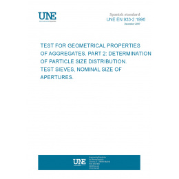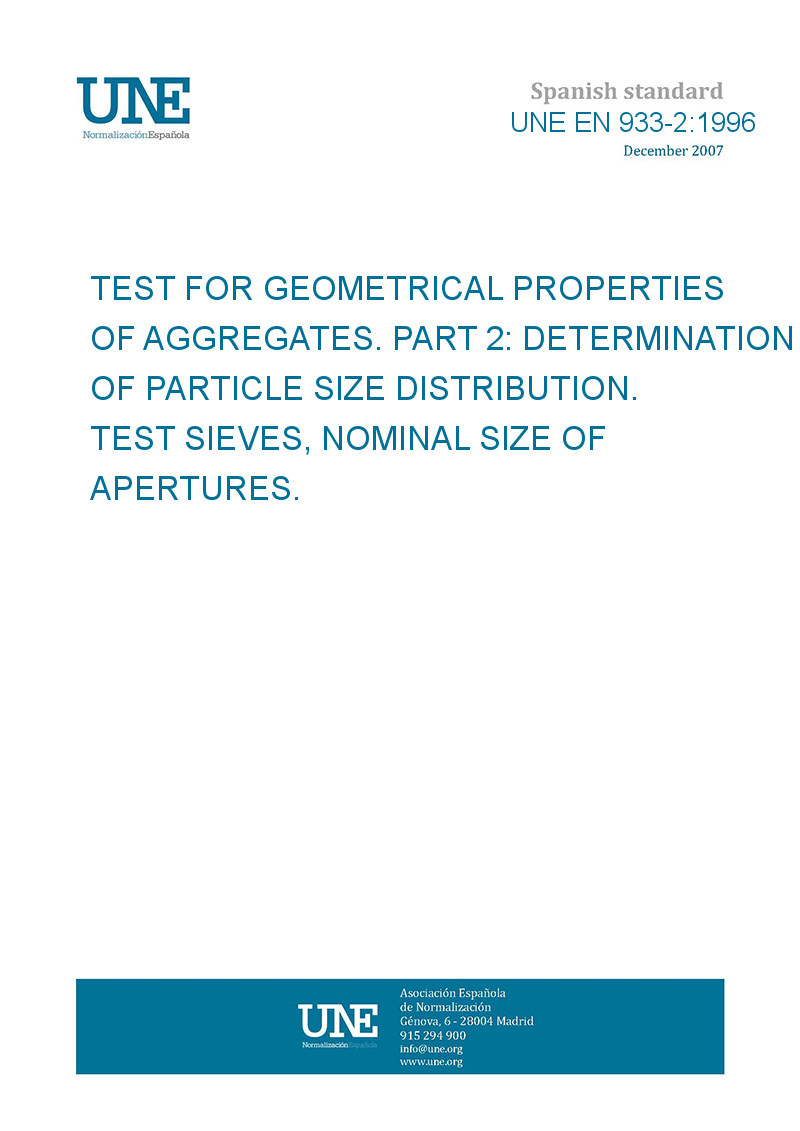 Ensayo para determinar las propiedades geométricas de los áridos. Parte 2: Determinación de la granulometría de las partículas. Tamices de ensayo, tamaño nominal de las aberturas.