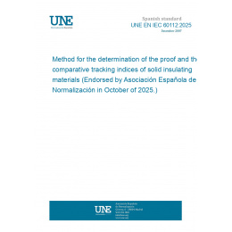 This standard UNE EN IEC 60112:2025 Method for the determination of the proof and the comparative tracking indices of solid insulating materials (Endorsed by Asociación Española de Normalización in October of 2025.) is classified in these ICS categories:
