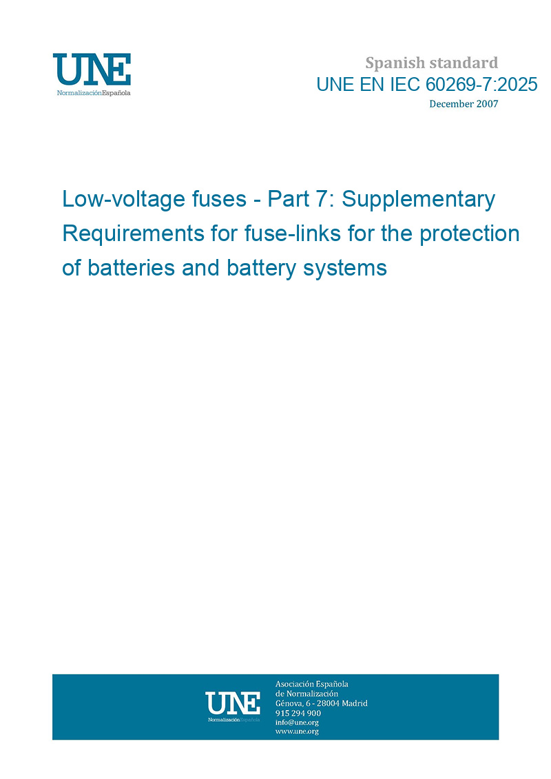 Standard number: | UNE EN IEC 60269-7:2025 |