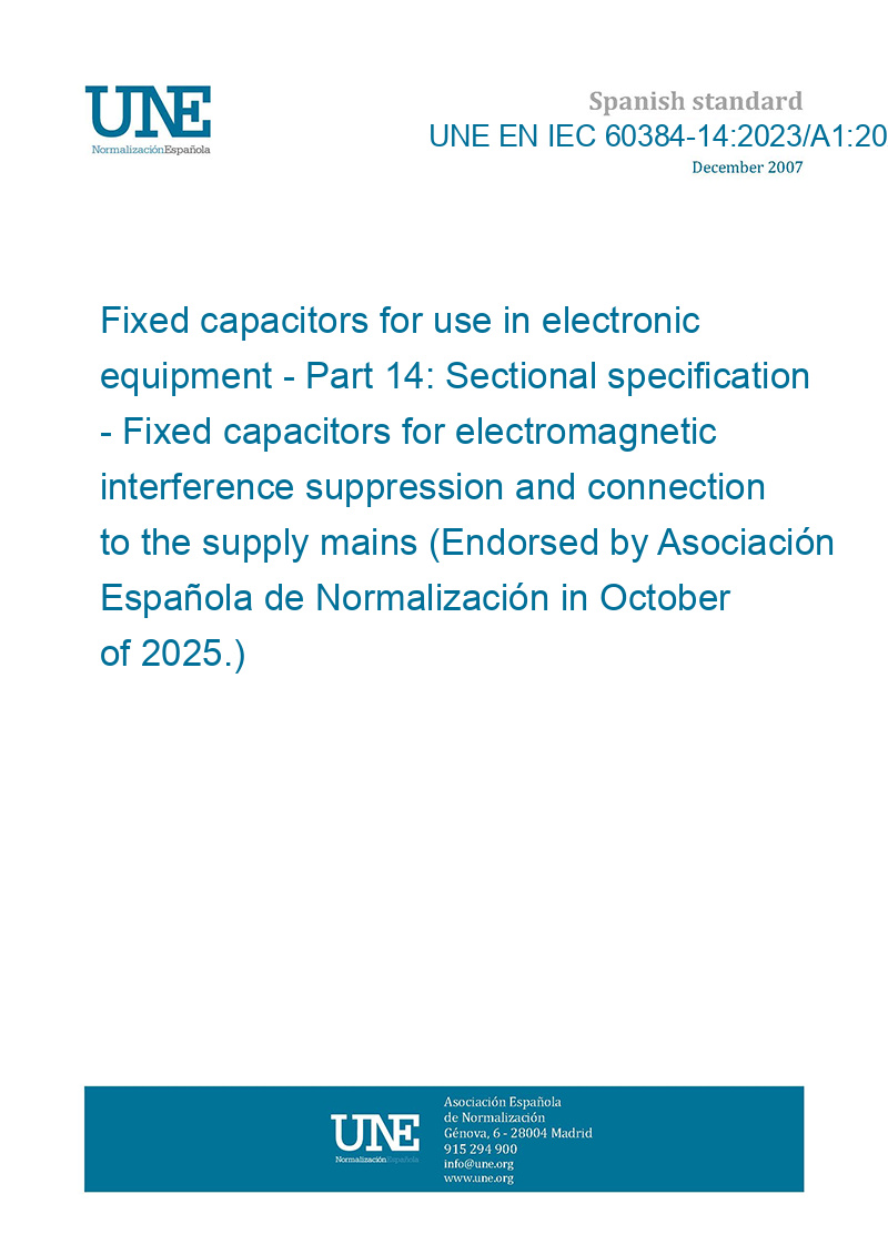 Standard number: | UNE EN IEC 60384-14:2023/A1:2025 |