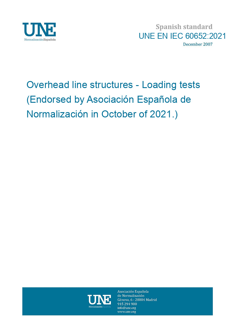 >UNE standards>UNE EN IEC 60652:2021 Overhead line structures - Loading tests (Endorsed by Asociación Española de Normalización in October of 2021.)