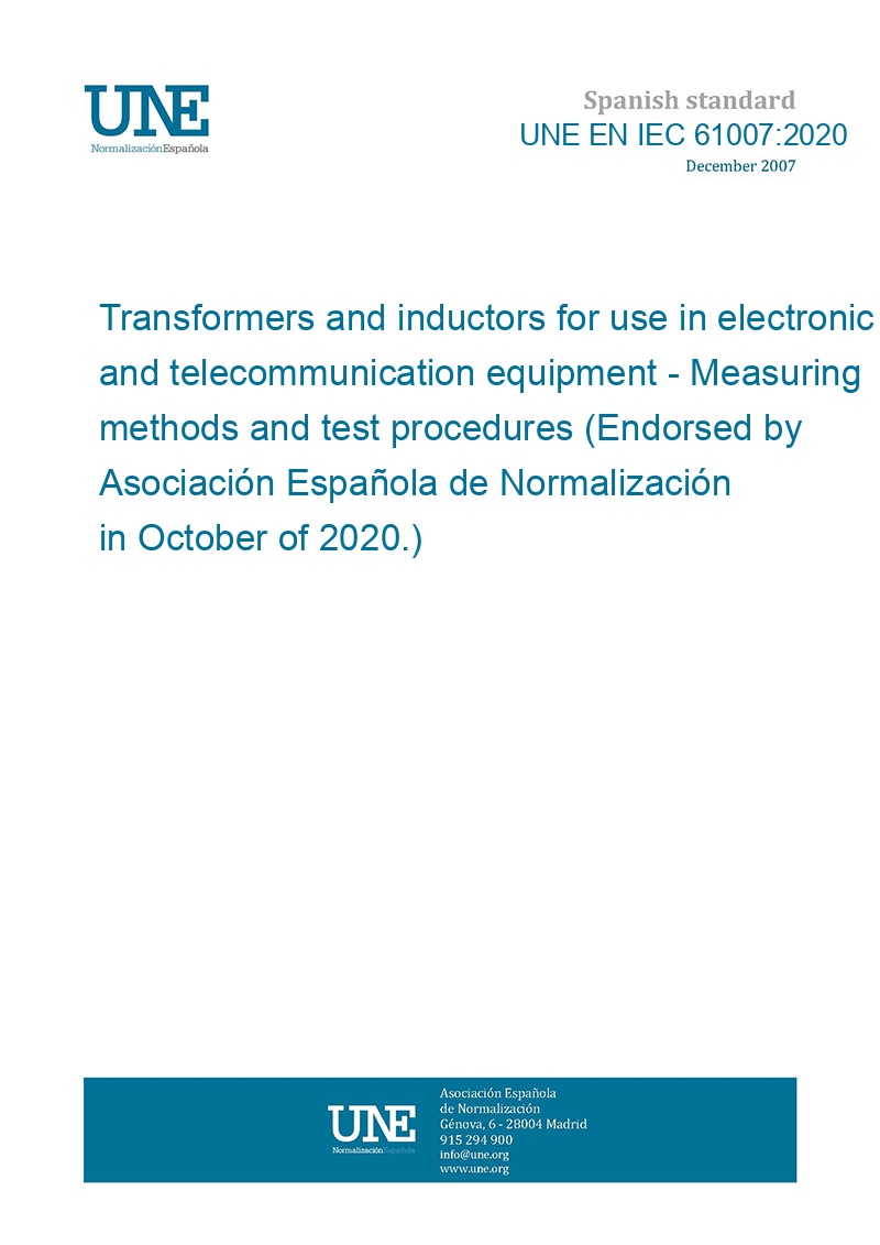 Transformadores e inductores para uso en equipos electrónicos y de telecomunicación. Métodos de medida y procedimientos de ensayo. (Ratificada por la Asociación Española de Normalización en octubre de 2020.)