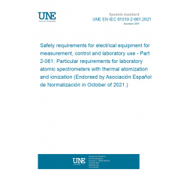 Safety requirements for electrical equipment for measurement, control and laboratory use - Part 2-061: Particular requirements for laboratory atomic spectrometers with thermal atomization and ionization (Endorsed by Asociación Española de Normalización in October of 2021.)