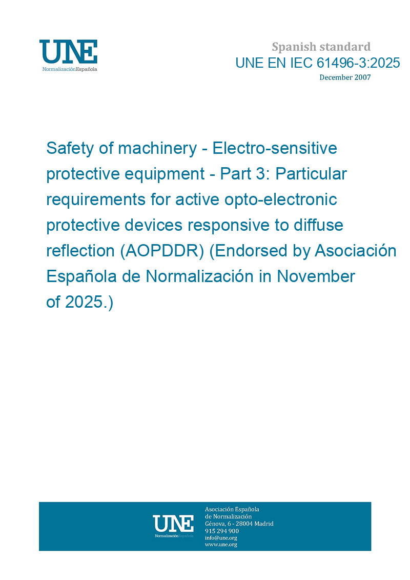 | Standard number: | UNE EN IEC 61496-3:2025 |