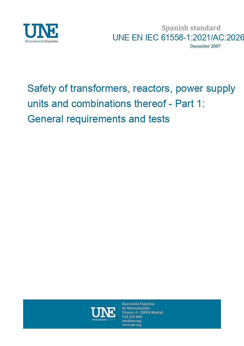 | Standard number: | UNE EN IEC 61558-1:2021/AC:2026-01 |