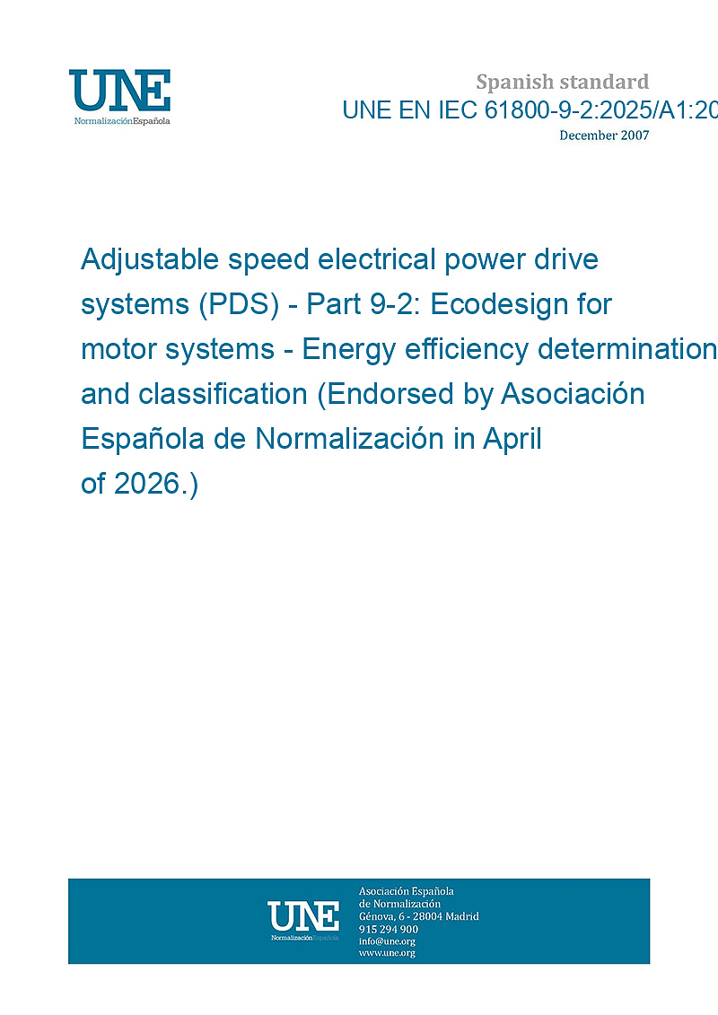 | Standard number: | UNE EN IEC 61800-9-2:2025/A1:2026 |
