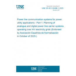 Sistemas de comunicación por líneas eléctricas para aplicaciones de compañías eléctricas. Parte 1: Planificación de sistemas portadores de línea eléctrica analógicos y digitales operados sobre redes eléctricas de alta tensión (AT) (Ratificada por la Asociación Española de Normalización en octubre de 2025.)