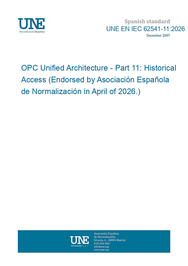 OPC Unified Architecture - Part 11: Historical Access (Endorsed by Asociación Española de Normalización in April of 2026.)