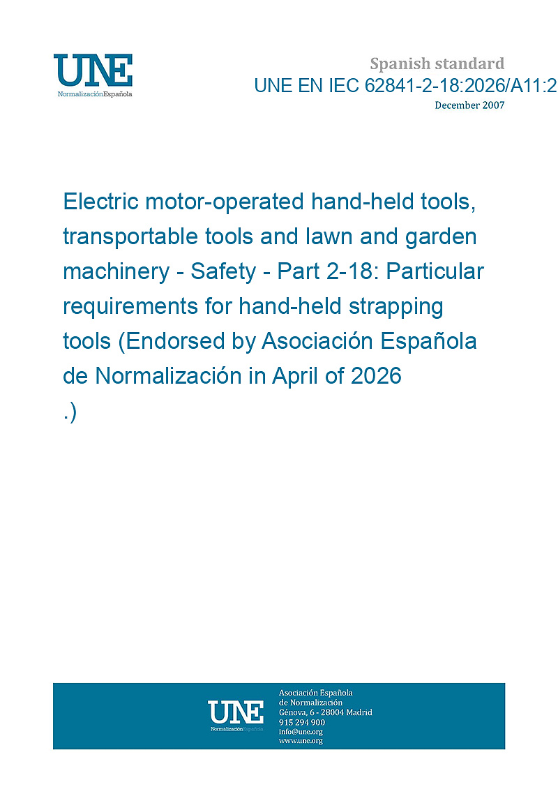 | Standard number: | UNE EN IEC 62841-2-18:2026/A11:2026 |