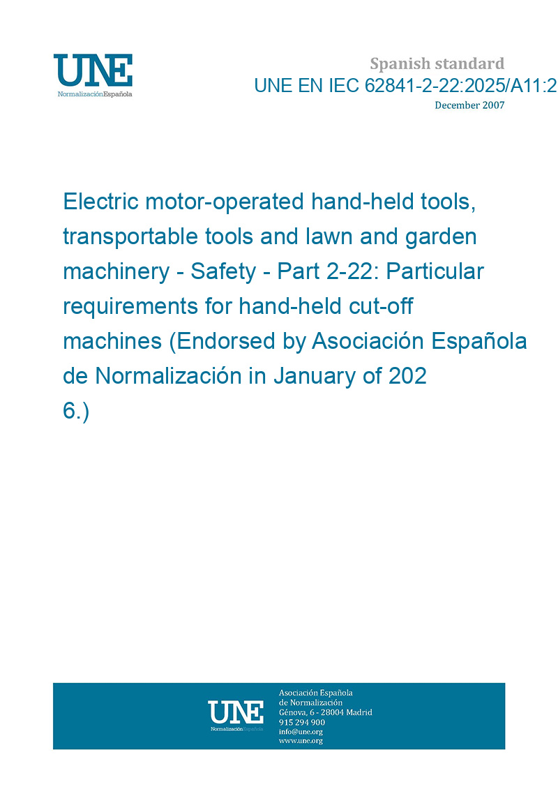 | Standard number: | UNE EN IEC 62841-2-22:2025/A11:2025 |