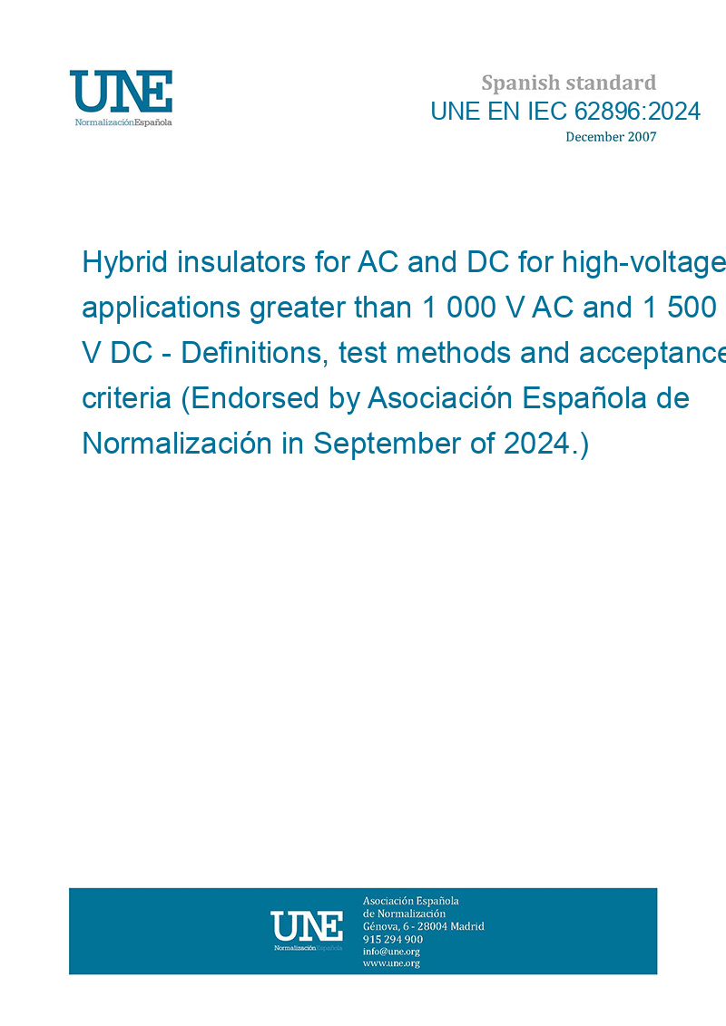 Aisladores híbridos para corriente alterna y corriente continua para aplicaciones de alta tensión superiores a 1000 V CA y 1500 V CC. Definiciones, métodos de ensayo y criterios de aceptación (Ratificada por la Asociación Española de Normalización en septiembre de 2024.)