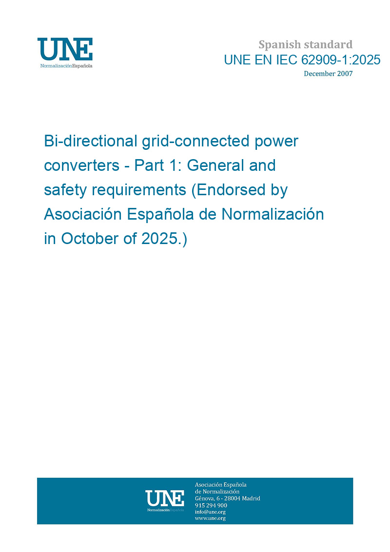 Convertidores de potencia bidireccionales conectados a la red. Parte 1: Requisitos generales y de seguridad (Ratificada por la Asociación Española de Normalización en octubre de 2025.)