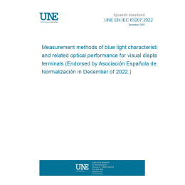 This standard UNE EN IEC 63207:2022 Measurement methods of blue light characteristics and related optical performance for visual display terminals (Endorsed by Asociación Española de Normalización in December of 2022.) is classified in these ICS categories: