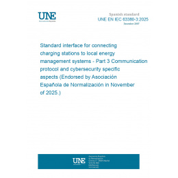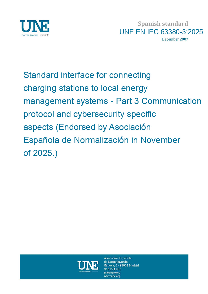 Interfaz normalizada de conexión de estaciones de recarga a sistemas locales de gestión de la energía. Parte 3: Protocolo de comunicación y aspectos específicos de ciberseguridad (Ratificada por la Asociación Española de Normalización en noviembre de 2025.)